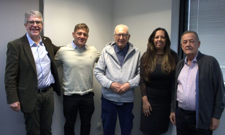Dr. Arena com diretoria mais equipe Amafresp, além do vice presidente do Conselho Deliberativo, Israel Gomes Cardoso e o associado e filiado Amafresp, Roberto Chiaverini